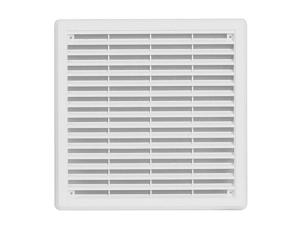 Mřížka, mřížky, plastová, plastové, plast, PVC, ABS, ventilační, větrání, odvětrání, odvětrávací, se, síťkou, na, fasádu, fasádní, zeď, omítku, nástěnná, vnitřní, venkovní, stropní, nasávací, bílá, 20 x 20, cm,