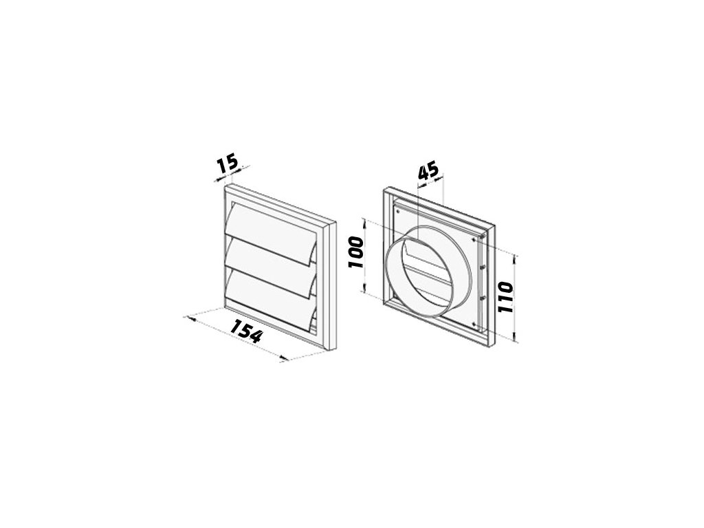 Větrací mřížka se žaluzií 154x154-100 mm MV100VJ hnědá