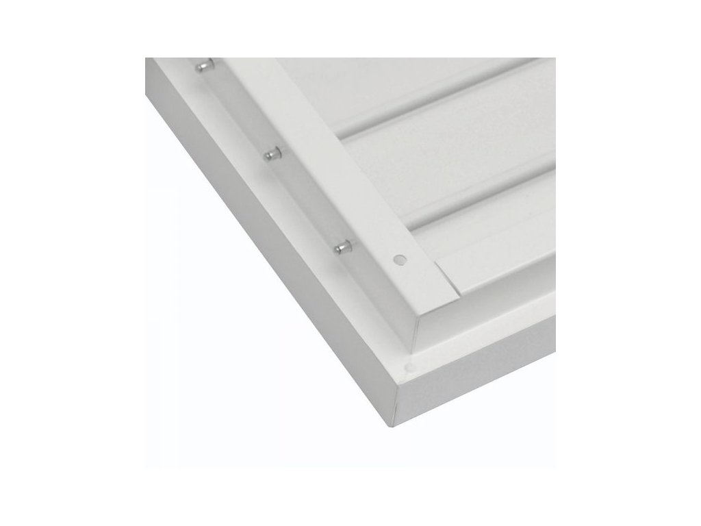 Mřížka se samotížnou (plastovou) žaluzií, kovovým tělem lakováno bílou práškovou barvou, pro lepší odolnost vůči vnějším povětrnostním vlivům. Lepší celková odolnost mřížky a tuhost (nekroutí se), tím pádem se zamezí vypadávání plastových lamel, které ve spodu mřížky přesahují, a brání tak stékající vodě, která by tak mohla zatéci do vzduchovodů a způsobit tím škodu.