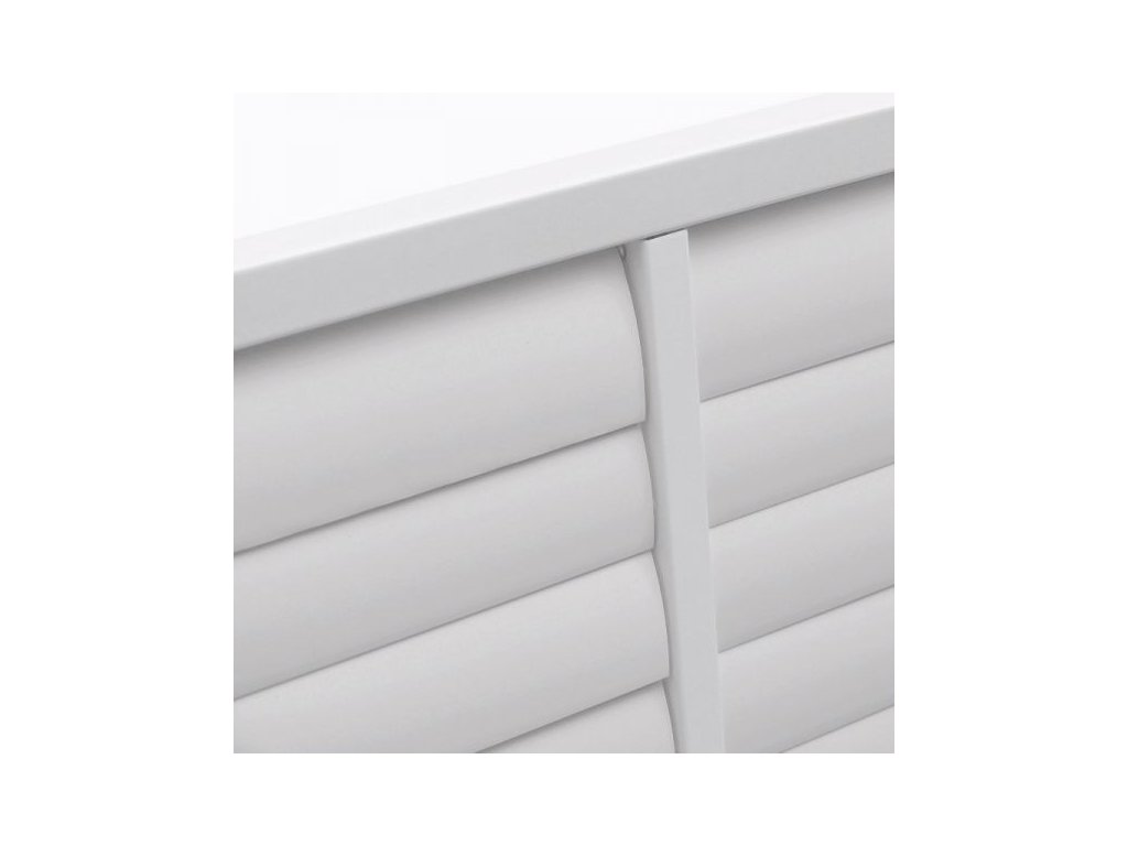 Mřížka se samotížnou (plastovou) žaluzií, kovovým tělem lakováno bílou práškovou barvou, pro lepší odolnost vůči vnějším povětrnostním vlivům. Lepší celková odolnost mřížky a tuhost (nekroutí se), tím pádem se zamezí vypadávání plastových lamel, které ve spodu mřížky přesahují, a brání tak stékající vodě, která by tak mohla zatéci do vzduchovodů a způsobit tím škodu.