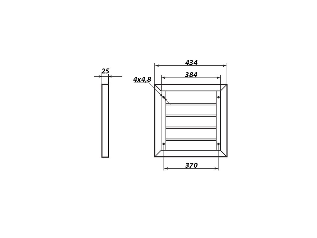 vnější rozměr | 434 x 434 mm, šířka: 25 mm |