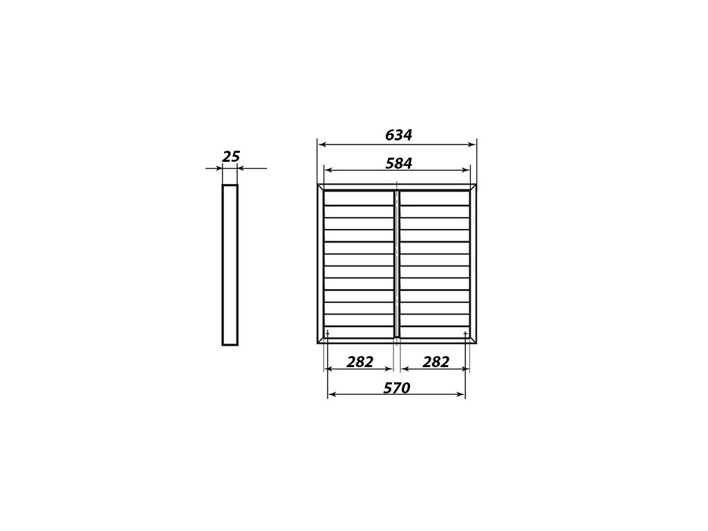 vnější rozměr | 634 x 634 mm, šířka: 25 mm |