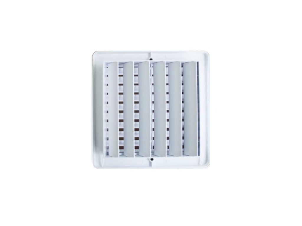 Plastová ventilační mřížka s pevnými skloněnými horizontálními žaluziemi a vnitřním mechanizmem pro uzavření ventilační cesty - uzavírání je možné posuvníkem na mřížce nebo provázkem. Otevírání posuvníkem je ideální při instalaci, kam na mřížku dosáhneme, při umístění ve výšce je možné otevírání pomocí provázku.