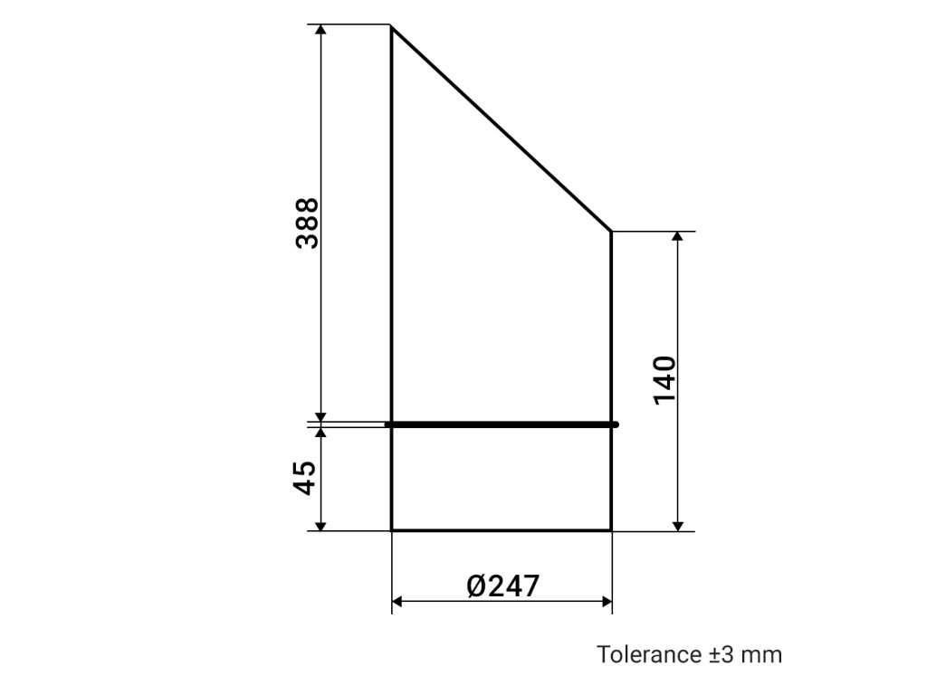 Instalace je velmi jednoduchá, příruba se jednoduše zasune do kulatého potrubí o průměru 250 mm. Tento spoj je pro lepší těsnost možné upevnit pomocí hliníkové lepicí pásky. Díky svému designu je výfukový kus vhodný jak na různé průmyslové budovy, tak i na rodinné domy.