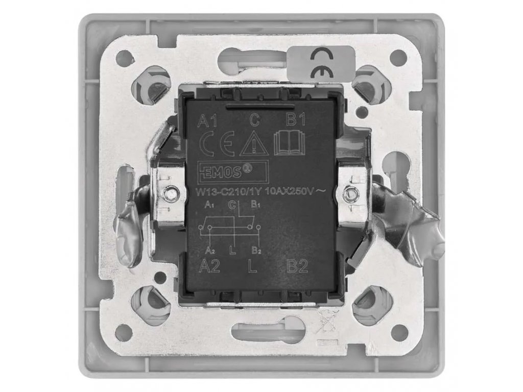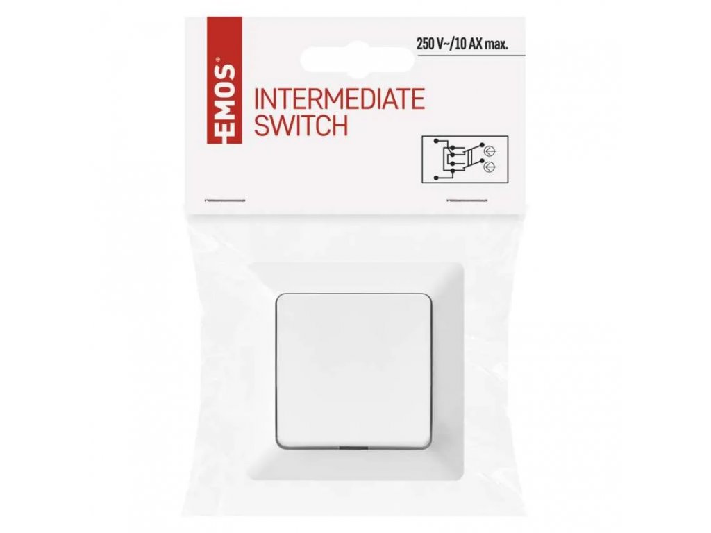 Vypínač - přepínač EMOS řazení č. 7 v decentním designu v lesklé bílé barvě.