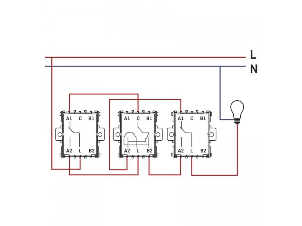 Křížový, jednoduchý vypínač ř. 7. Montáž do instalační krabice. Stupeň krytí IP20. Použití jako spínač k ovládání svítidel z více, jak dvou míst.