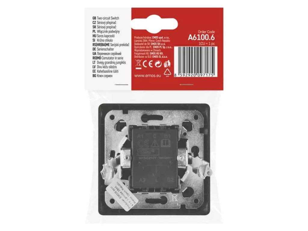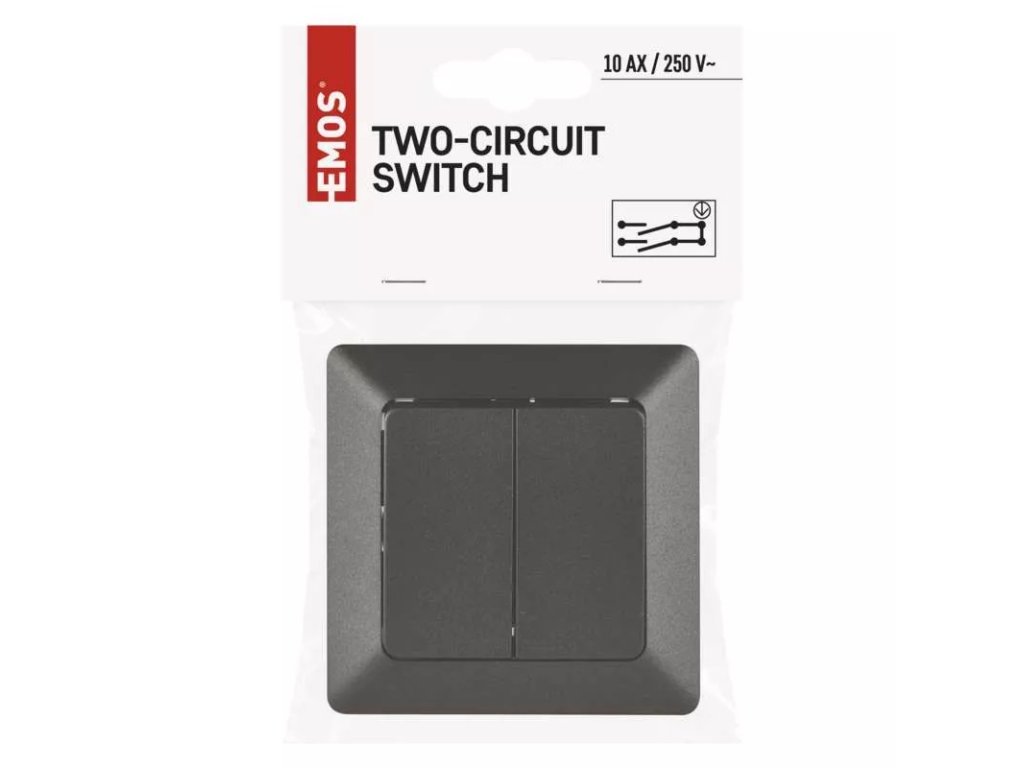 Vypínač - přepínač EMOS řazení č. 5 v decentním designu v antracitové barvě.