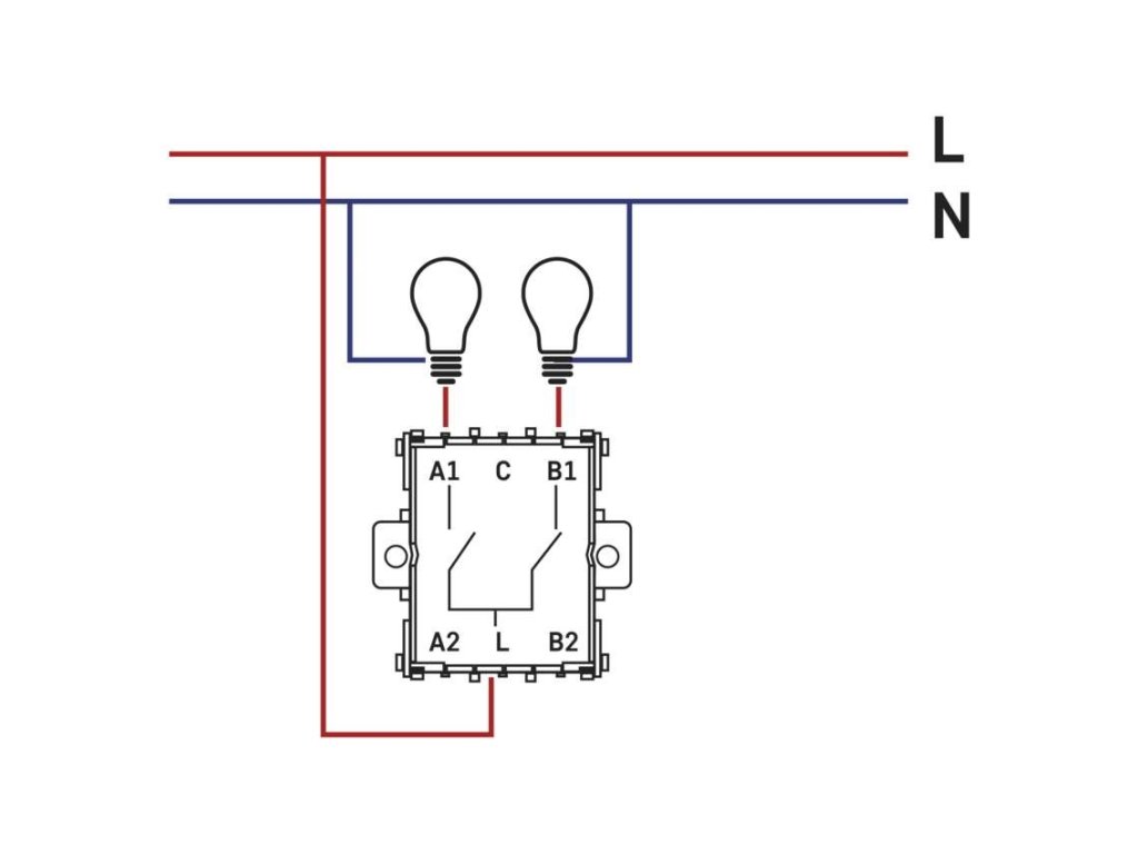Lustrový (sériový) dvojitý vypínač ř. 5. Montáž do instalační krabice. Stupeň krytí IP20. Použití jako spínač k zapnutí dvou svítidel nebo dvou skupin svítidel z jednoho místa.