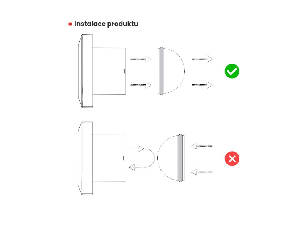 - Snadná instalace – klapka se jednoduše nasazuje přímo do potrubí za ventilátor