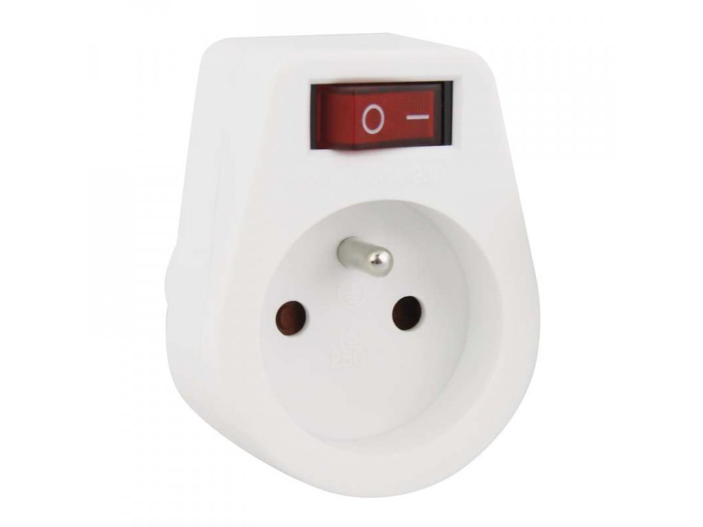Vidlice, zástrčka, do zásuvky s průběžnou s zásuvkou 230V průchozí, bílá, vypínač,