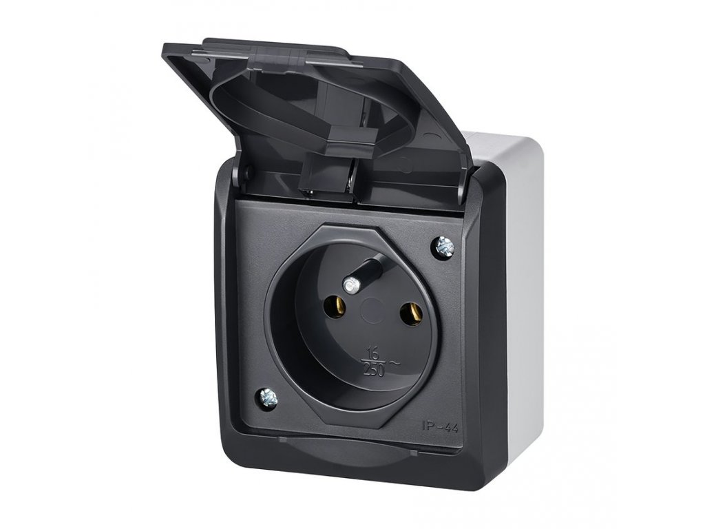 Venkovní zásuvka s víčkem IP44 Galatea antracitová, na zeď